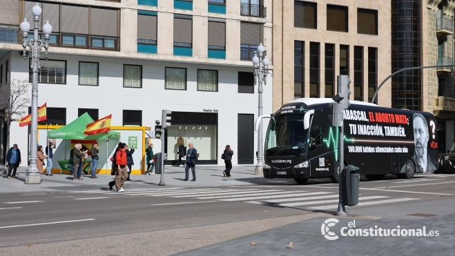 L'autobús principal mostra el rostre d'Abascal al costat del missatge “Abascal, l'avortament mata; la teva inacció també”, acompanyat d'imatges de fetus i la xifra “100.000 batecs silenciats cada any”, en referència al nombre anual d'avortaments a Espanya. El disseny inclou a més un electrocardiograma com a picada d'ullet directa a la proposta del “batec fetal” que Vox va defensar a Castella i Lleó i que posteriorment va retirar, generant crítiques entre el seu propi electorat més conservador.