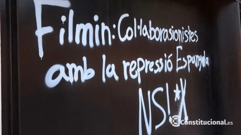 The headquarters of the audiovisual platform Filmin in Barcelona appeared this Tuesday with graffiti on its facade in protest against the inclusion in its catalog of the documentary Ícaro: la ciudad en llamas, which addresses the riots that occurred after the 'procés' sentence in 2019. The message on the shutter, claimed by the collective Nosaltres Sols!, accused Filmin of being "collaborators with Spanish repression," in a gesture that has generated rejection in broad sectors.